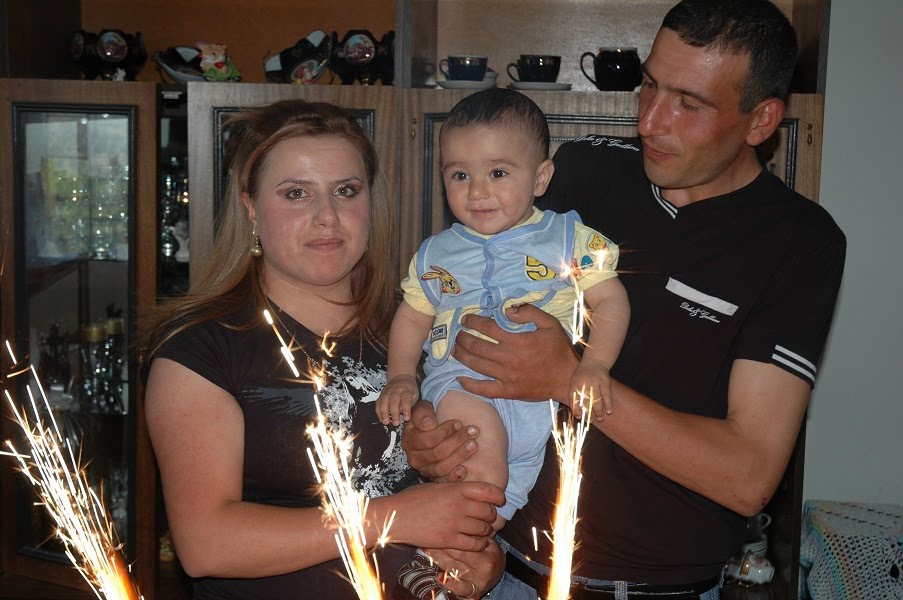 But birthdays are a big deal (not as big a deal as weddings and “army parties” for when someone is about to start his compulsory service or after he finishes – I haven’t been to those yet) starting from age one. When I was in Solak, my host father’s sister’s grandson (also an Albert as it turns out) turned one. His party included khorovats for somewhere between 30 and 40 people, bottle after bottle of cognac and vodka and a cake with fireworks on it.